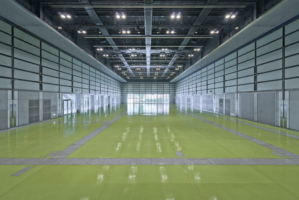 約1,600m²の広さと5t/m²の耐過重を誇る大展示ホールは、