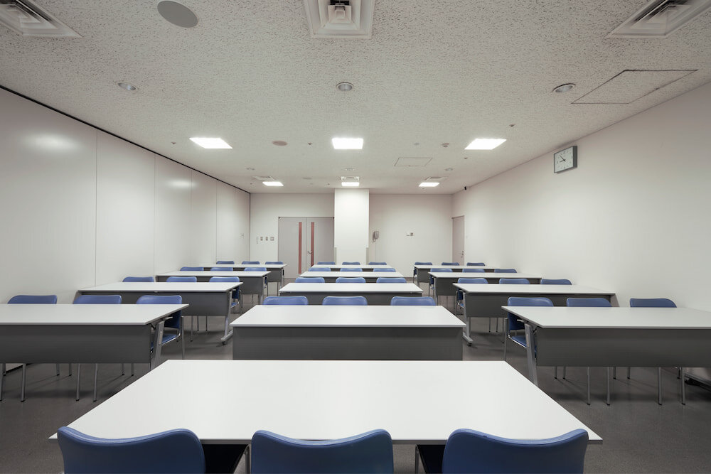 39人規模。研修会、講習会や会議にご利用ください。B会議室(42人規模)と合わせて1つの会場として使うこともできます。