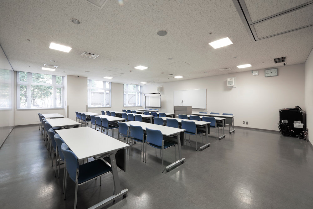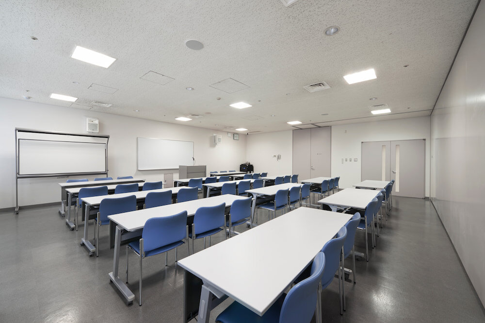 42人規模。研修会、講習会や会議にご利用ください。A会議室(39人規模)と合わせて1つの会場として使うこともできます。